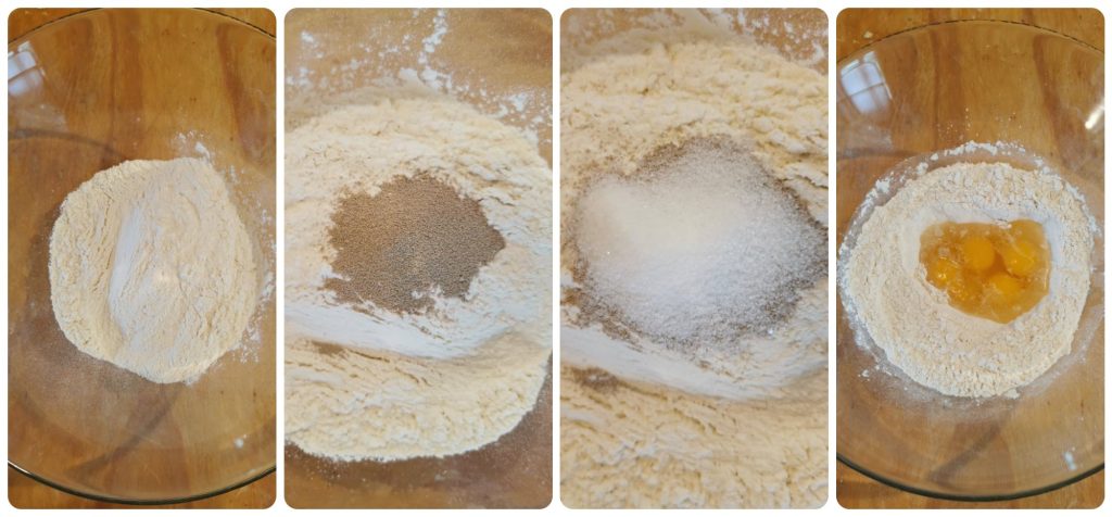 - 4 cups flour (2 cups all-purpose flour + 2 cups Manitoba flour)