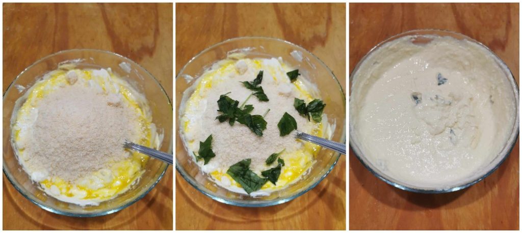 Break the whole medium eggs inside, add the cornstarch (or all-purpose flour) and the Parmigiano Reggiano.