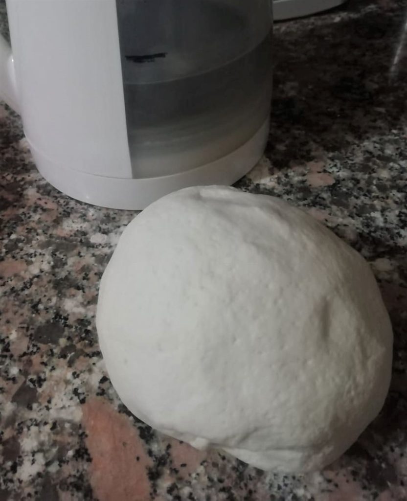 Gradually add the hot water and knead the mixture. Once you have formed a compact and homogeneous mass, wrap it in plastic wrap and let it rest at room temperature for at least 30 minutes.