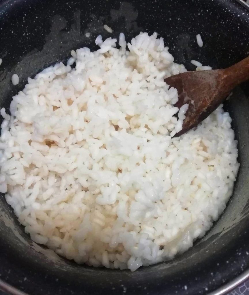 • Put the rice in a small pot with twice its weight in water, bring to a boil for 10 minutes, then turn off the heat and let it rest until it cools.