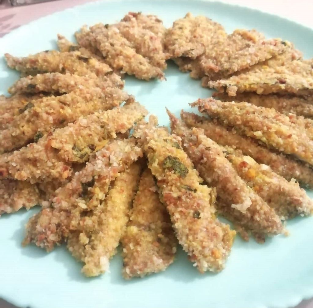 Drizzle the breaded anchovies with a little olive oil and bake in a preheated oven at 350°F for a maximum of 10-15 minutes.