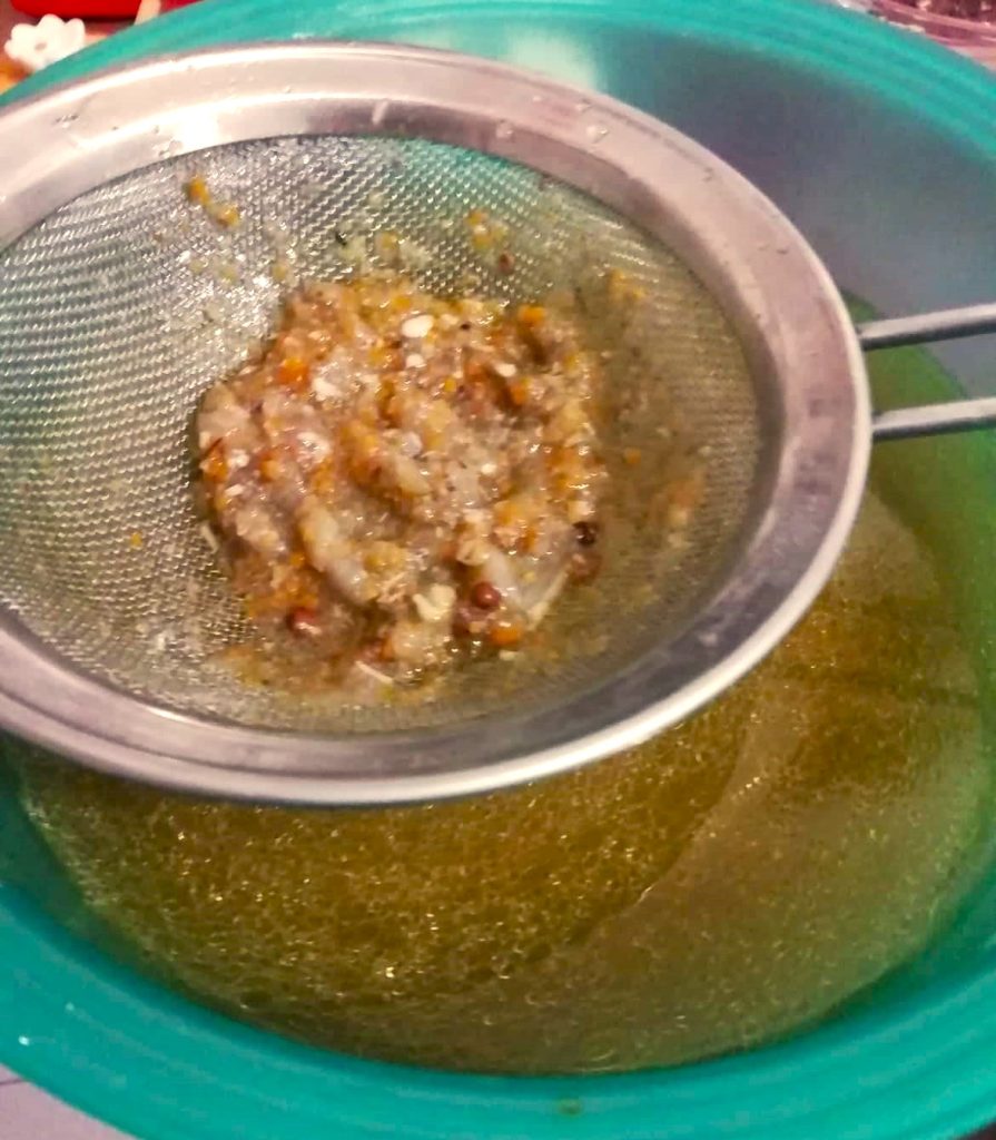 Strain the broth through a fine mesh sieve to remove vegetable residues, and place it in a container with a lid.