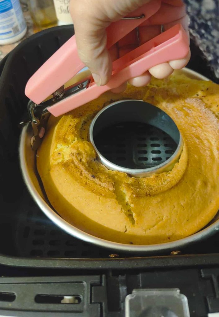 Place the pan in the air fryer basket and set the cooking temperature to 320°F (160°C) for 25 minutes. Cook the bundt cake without opening the fryer during cooking.