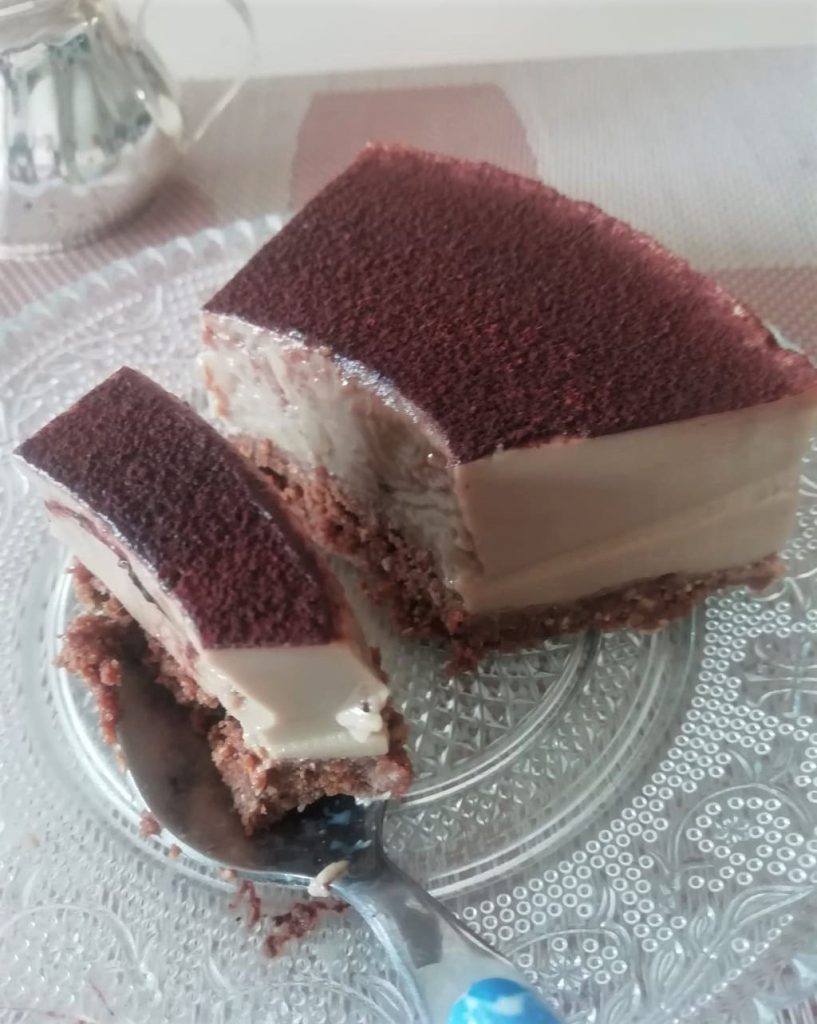 The coffee pudding cake with a crunchy base is made with homemade coffee pudding, revamped in form and texture. It’s very easy to make and, above all, it’s an original dessert. With a few chocolate biscuits, you will make the base, then pour the pudding mixture on top, add a sprinkle of cocoa, and you’re done.
