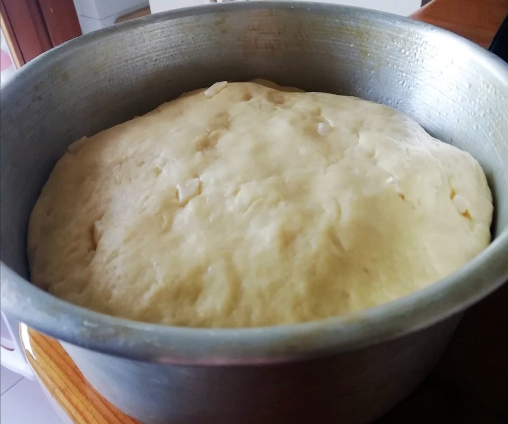 • Shape the dough into a ball and place it into the pan, previously buttered and floured.