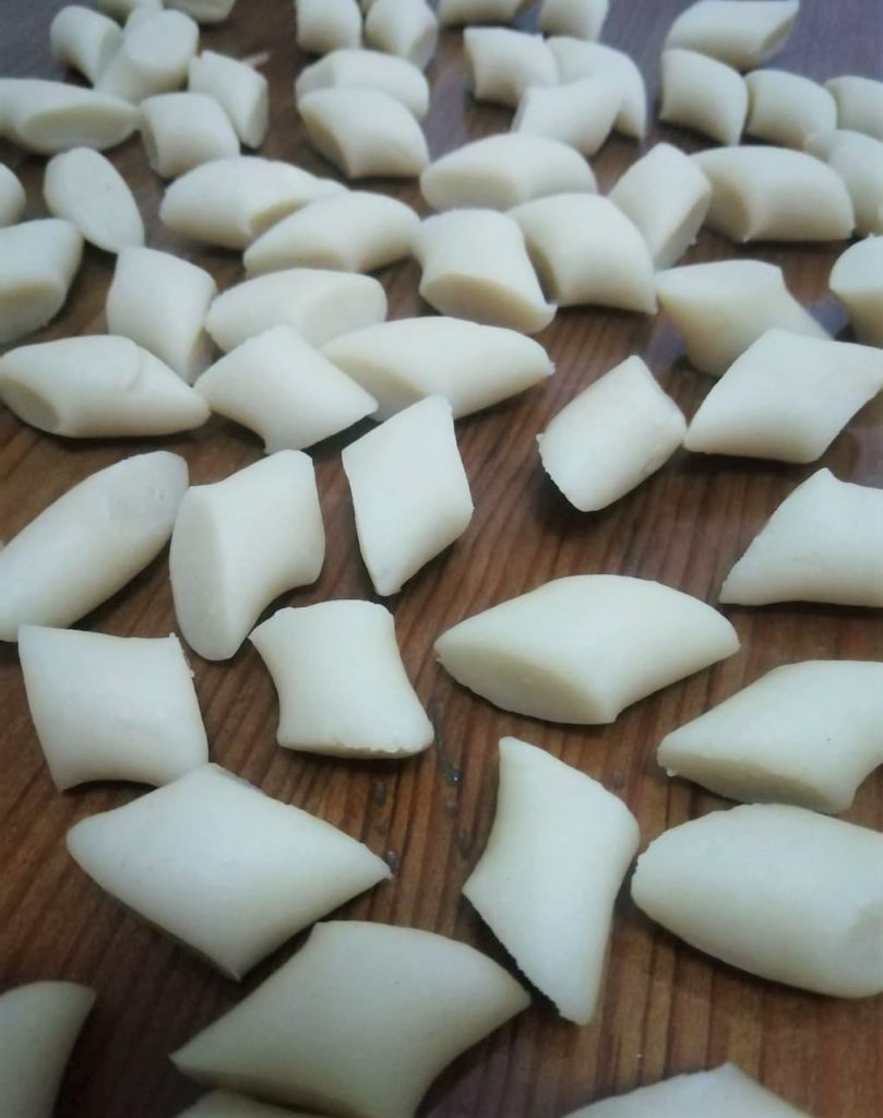 Then, with a sharp knife, cut the gnocchi to your desired size.
