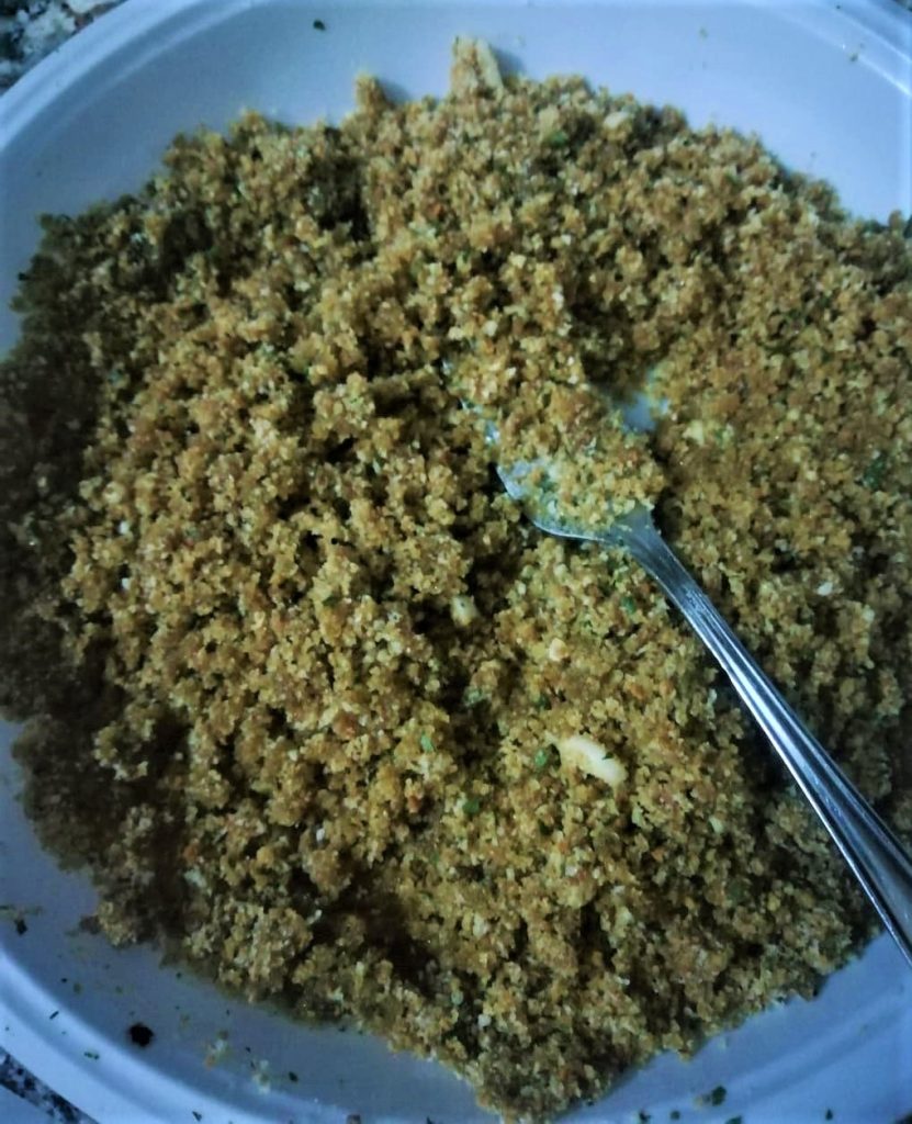 Prepare the special breadcrumb coating by mixing together the following ingredients: