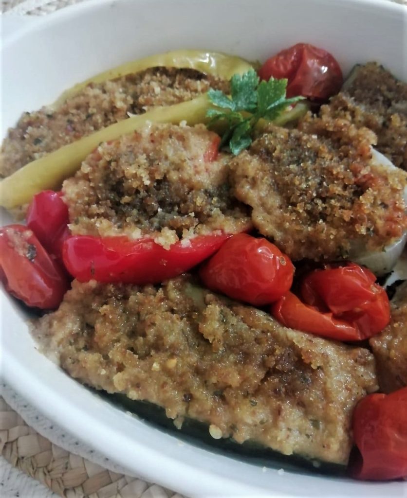 Pan-gratined vegetables without turning on the oven, perfect with the special flavored breadcrumb coating that enhances the taste and freshness of this tasty side dish. Breadcrumbs, spices and two special ingredients with which to fill the vegetables and then gratin them directly in the pan.