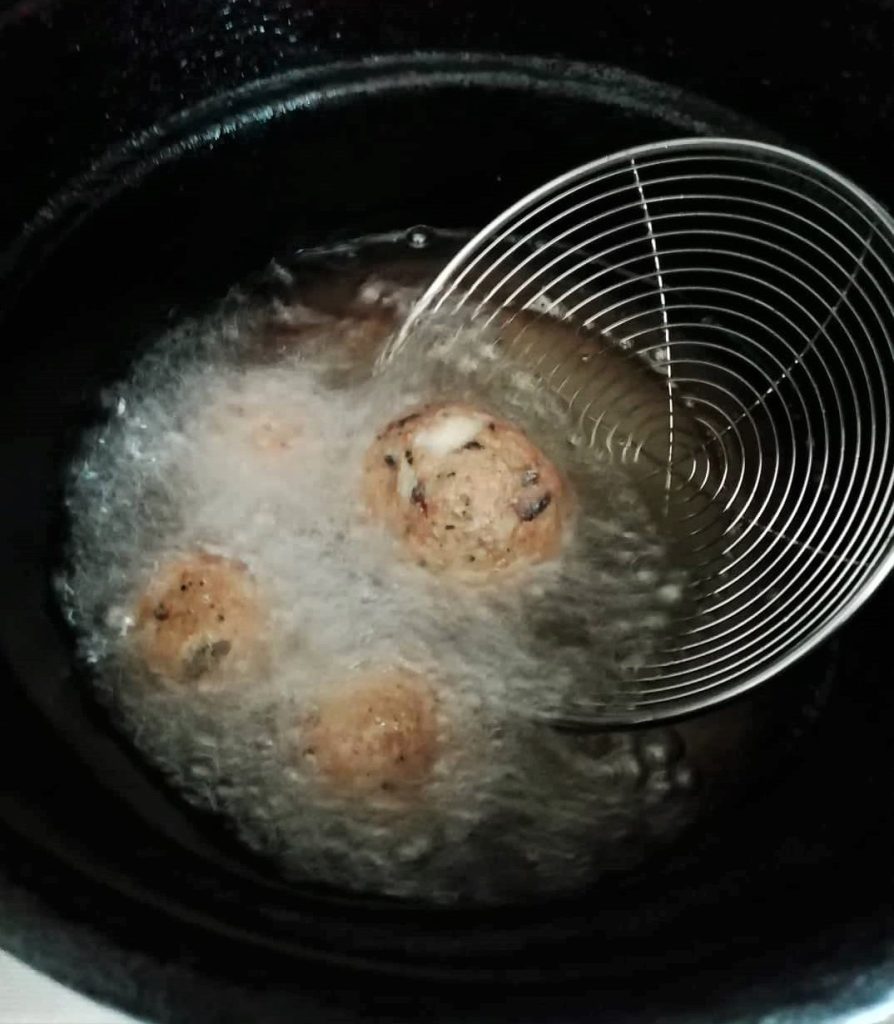 Mix the compound well and form the meatballs, using a small teaspoon to scoop out the portion, forming into small balls. With this amount, you will get 25, if you make them smaller, 30.