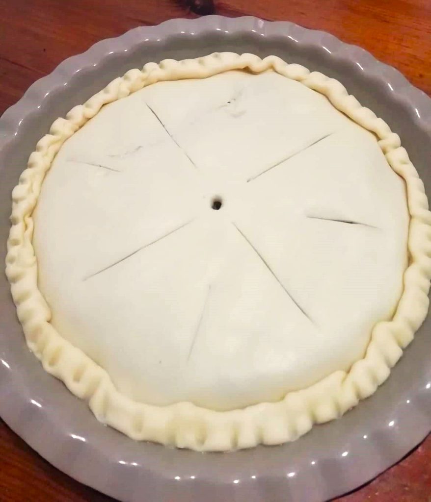• Place a sheet of aluminum foil over the pie and bake it in a preheated oven for 50 minutes at 340°F with a fan oven, or at 356°F if using a static oven.