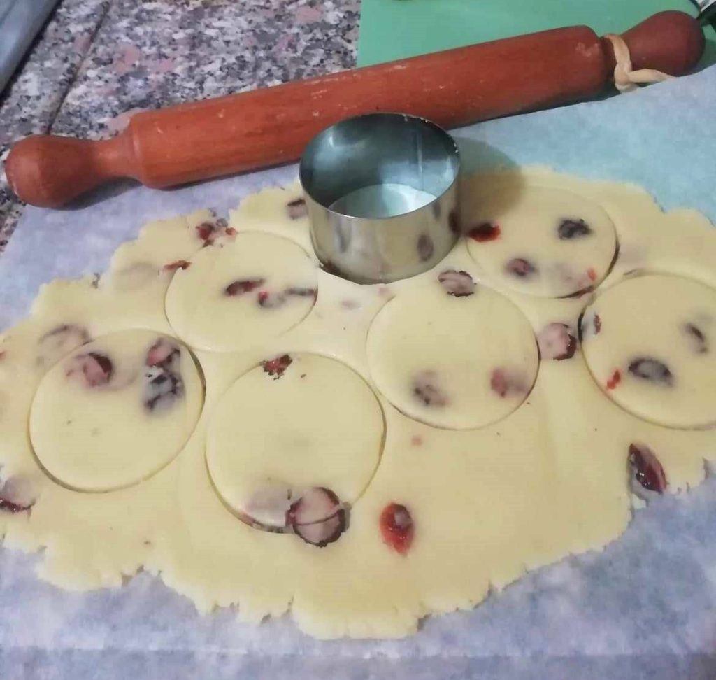 Use a cookie cutter or a mold of the desired diameter (I used one of 2.5 inches) to cut out the cookies and place them on a baking sheet or in the air fryer’s basket, where you will have placed a sheet of parchment paper to prevent sticking.