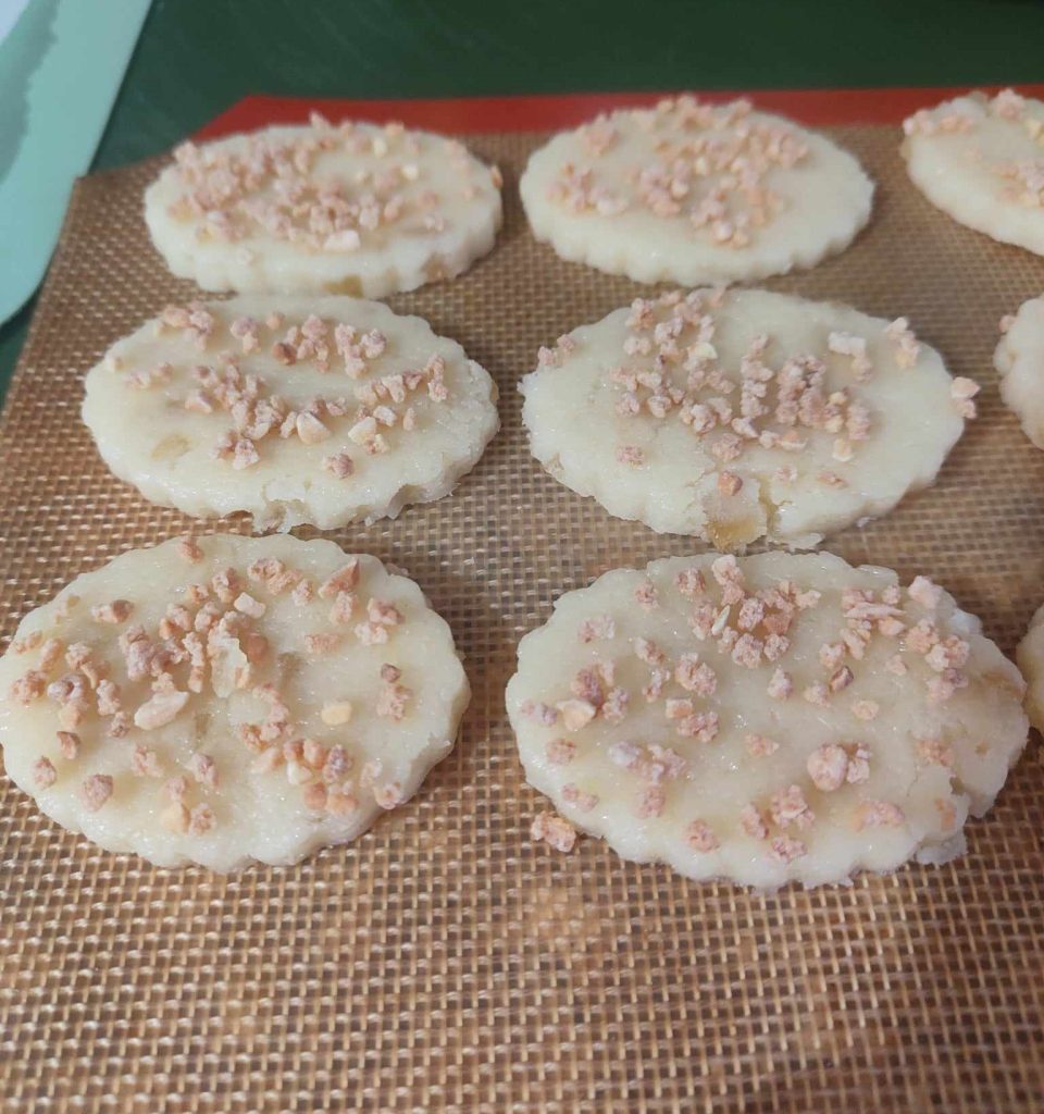 Bake the cookies at 340°F for 8-10 minutes, depending on the thickness and size, both in the traditional oven and in the air fryer.