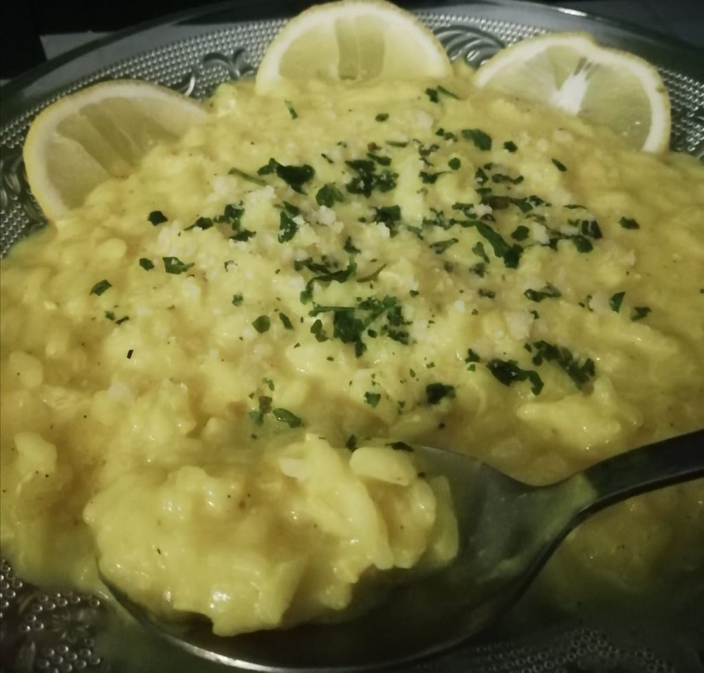 Rice in broth with lemon and eggs is a simple and tasty first course, with the addition of eggs and lemon fragrance. It is also very popular with children, especially when they have little appetite and we don’t know what to offer them, or when you want to prepare a simple and quick rice dish with very few ingredients. After trying the delicate rice in broth with lemon and eggs, I recommend also making the bold and colorful risotto with pumpkin cream, peppers, and chives.