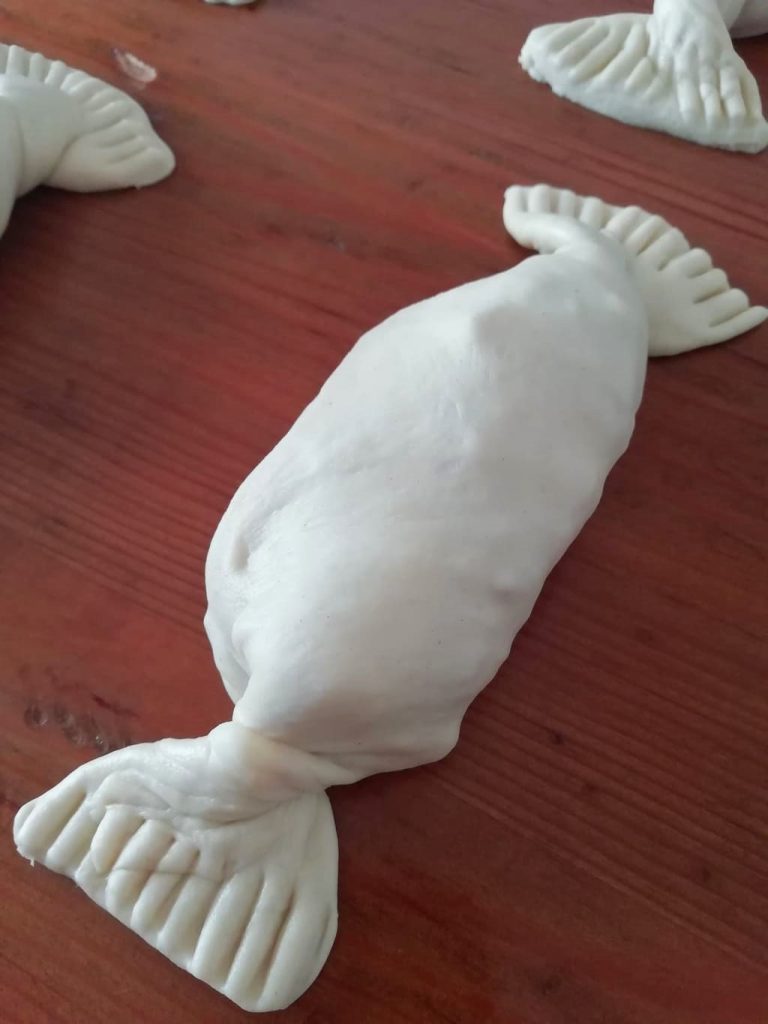 Close the candy by folding the side edges of the dough toward the center. This magic dough is very elastic and easy to handle.