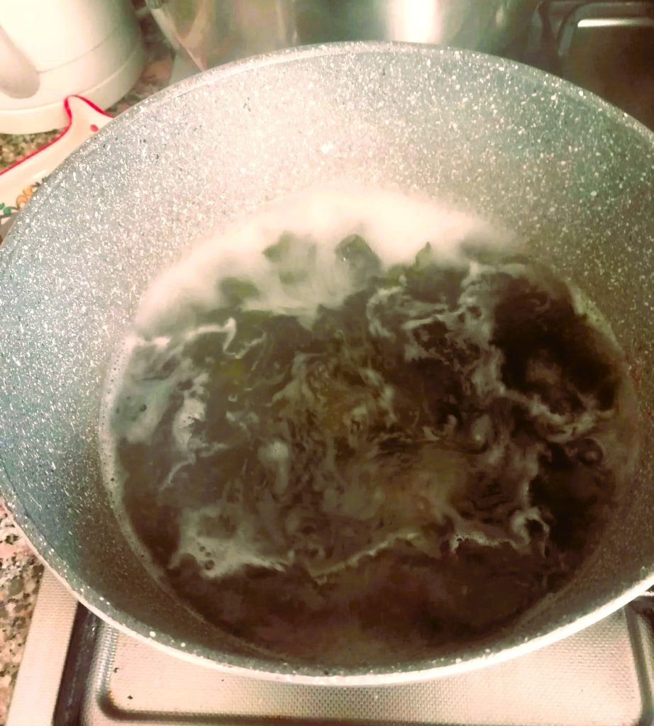 In a saucepan, add the dashi broth and bring it to a boil, squeeze the wakame seaweed and add it to the broth, cooking for 3 minutes. If you use semi-soft tofu, cut it into cubes and add it to the broth. Alternatively, you can put the silken tofu directly into the soup bowl.