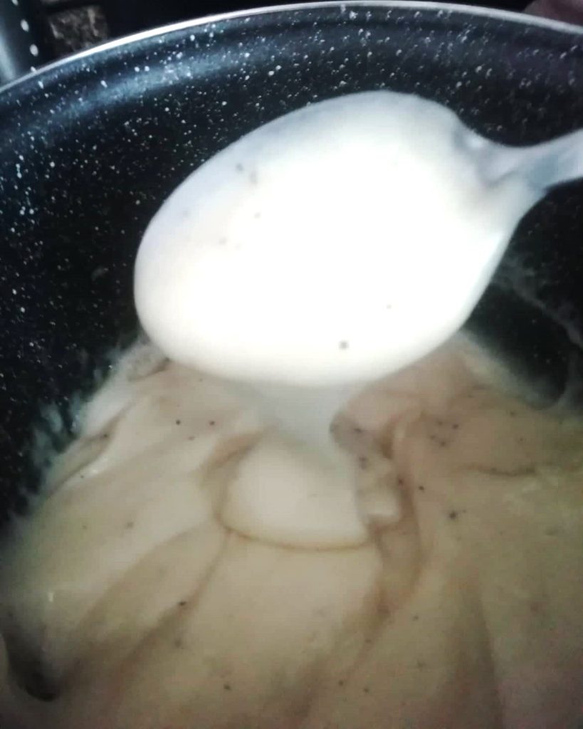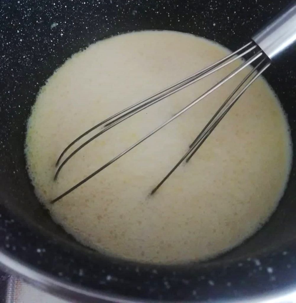 In two minutes it will become creamy and stringy, turn off the heat and remove the saucepan from the stove.