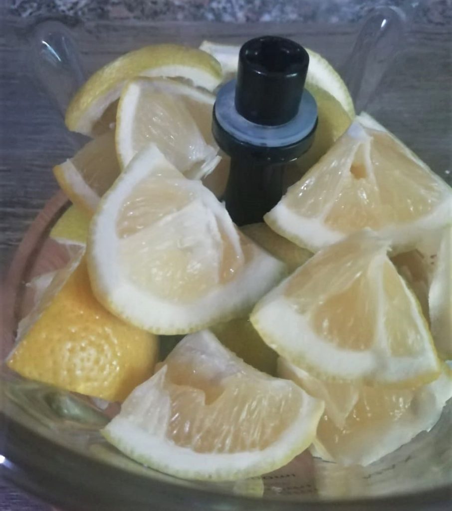 Wash the lemons well, cut them into pieces with the peel, and remove the seeds.