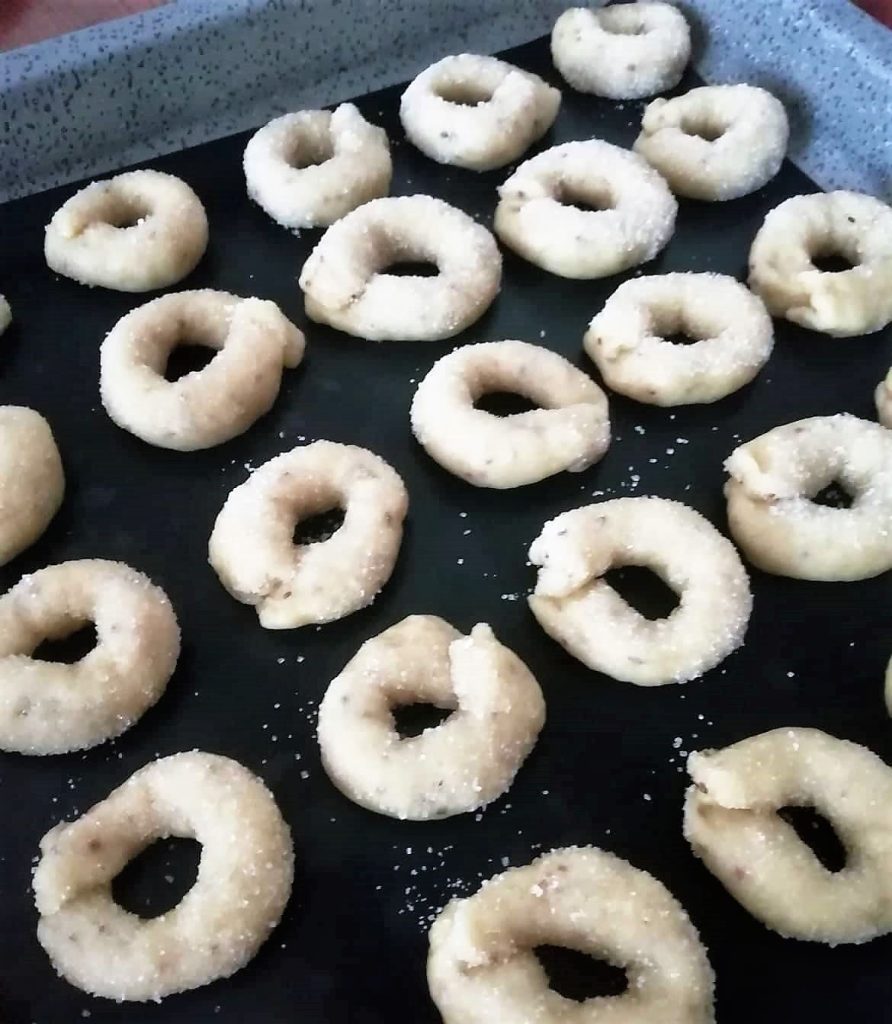 Place them on the baking tray, close to each other, with at least half an inch of distance. With this dose, you will get approximately 35 donuts. If you want more, double the doses, or halve it if you prefer to make fewer.