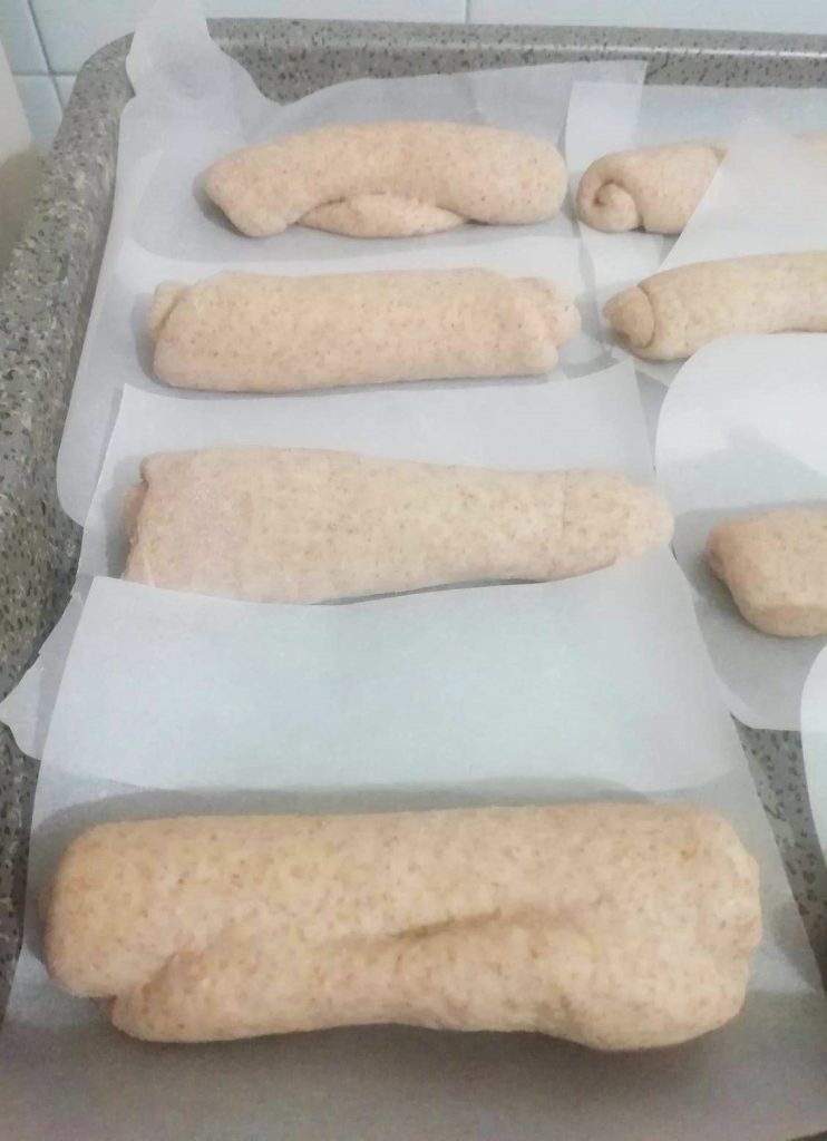 Place the shaped rolls on a baking tray lined with parchment paper.