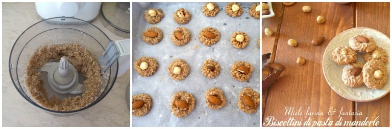 Place an almond (or a hazelnut, candied cherry, etc.) on each cookie, cover the baking sheet with plastic wrap without touching the cookies, and let them “rest” in the fridge for at least 8/10 hours.