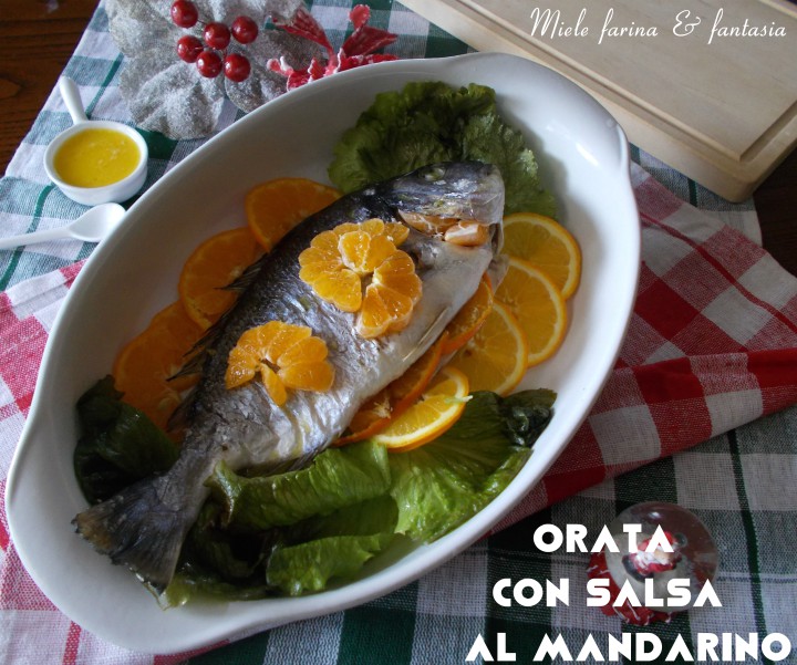 Citrus fruits can be used in the kitchen to prepare both sweet and savory recipes, as in this case. Baked sea bream with mandarin sauce is a refined and light dish, with a delicate flavor and delightful aroma. It is a very easy dish to prepare, eye-catching, perfect for special occasion lunches. The accompanying sauce, a vinaigrette different from the usual, in which vinegar or lemon has been replaced by fresh mandarin juice, can also be used with fresh or smoked salmon, mullet, sea bass, etc… Baked sea bream with mandarin sauce can be served as an appetizer, by reducing portion sizes, or as a main course.