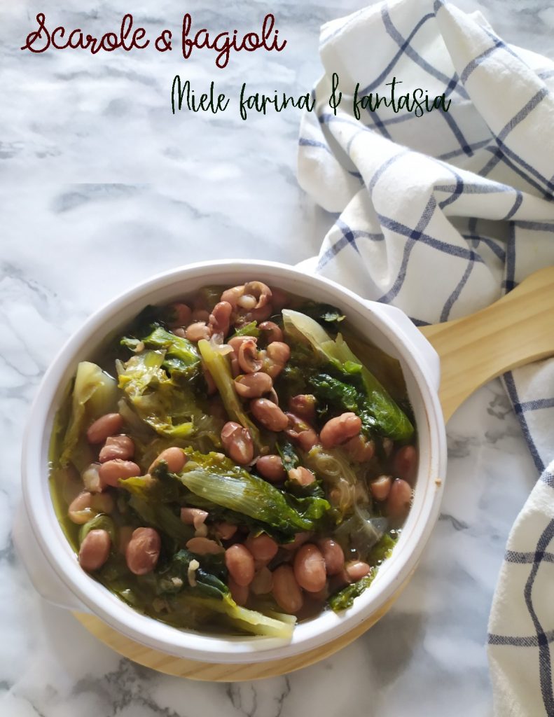 The soup of beans and escarole is a so-called “humble” dish, light but nutritious, with peasant origins, typical of Campania. It is a very good, vegetarian dish, gluten and lactose-free in its basic version, and very simple to make. This recipe is ideal for warming up cold winter evenings, and thanks to its lightness, it is perfect for lightening the richness of Christmas dishes, between one dinner and another. The bean and escarole soup can be enriched with chili; or, in a richer, less dietary version, with bacon, prosciutto, or sausages. This is the basic version that I prepare.