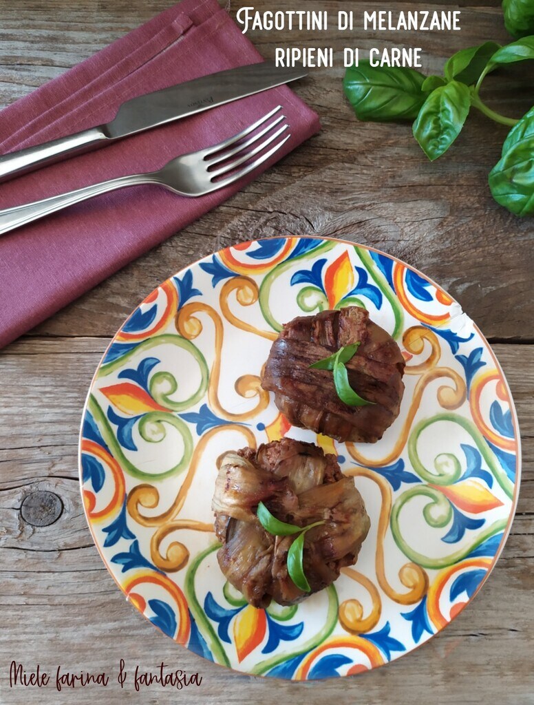 The eggplant bundles stuffed with meat are easy to make, incredibly tasty, and very delicious both hot and cold, and can be prepared well in advance. It is a gluten-free recipe, very practical because it combines a second course and a side dish in a single dish. The bundles can also be made with bell pepper or zucchini slices.