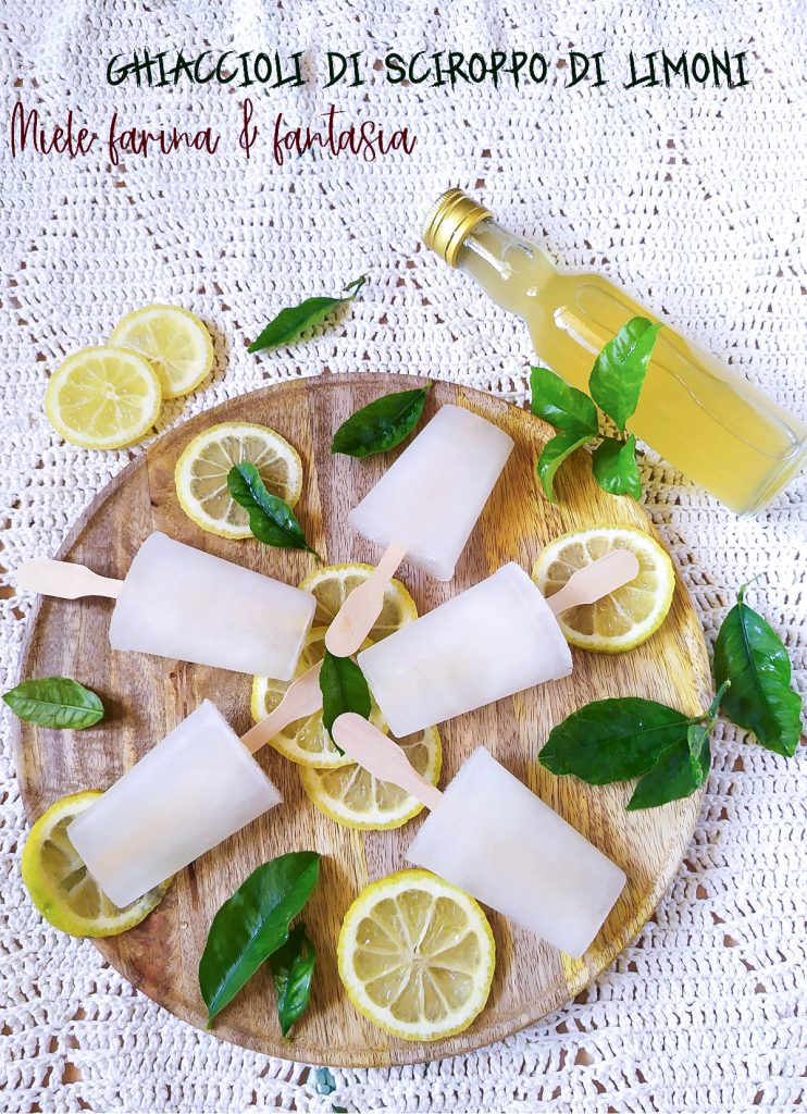 Today I want to talk about these delicious and aromatic popsicles made with two ingredients, namely homemade lemon syrup and simple water. Their preparation is extremely easy and quick, especially if you already have the lemon syrup ready; otherwise, you just need to prepare it, as described here, and wait an hour for it to be sufficiently cold. Popsicles are not just a fancy treat, but they are very refreshing, therefore perfect to fight the heat. The lemon syrup popsicles do not contain milk or its derivatives, nor gluten.
