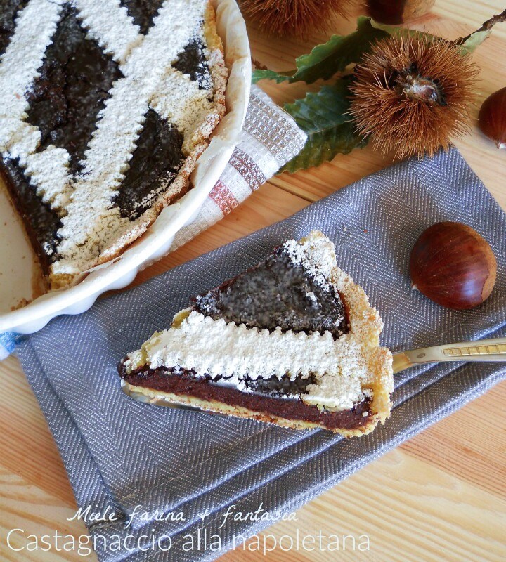 The Neapolitan Chestnut Cake, in the version I would like to propose to you, is an autumn dessert made with chestnut (fresh) and cocoa cream enclosed in a delicious shortcrust pastry shell. It’s soft, fragrant, simply delicious. There are many versions of this Campanian dessert: with chestnut flour and dark chocolate, with lard, with or without shortcrust pastry, and so on. This recipe was handed to me a while ago by a lovely lady who let me taste this dessert I didn’t even know existed, even though I am Campanian. For the shortcrust pastry, I followed the recipe I usually use. If we want to make this dessert gluten and lactose-free, we just need to prepare both the filling and the shortcrust pastry with specific products (I make both versions).