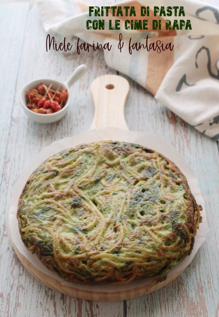 The pasta frittata with broccoli rabe can also be baked in the oven.