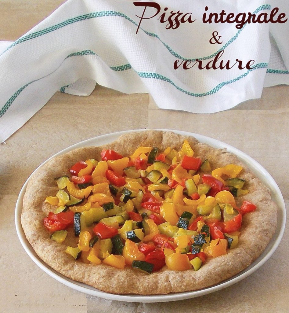 The whole wheat flour and vegetable pizza is a tasty, completely vegetarian recipe, light, perfect for serving on Saturday night or for a buffet, for our parties, for a picnic, or a dinner with friends. Whole wheat flour gives a more pronounced and rustic flavor compared to classic white flour and pairs well with the vegetables chosen for the filling, namely bell peppers and zucchini. It’s very easy, colorful, doesn’t require special tools, and will be liked by the whole family.