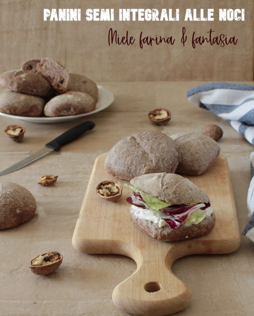 For breakfast or a snack, the whole wheat walnut rolls are delightful and perfect to accompany sweet or savory dishes. They are soft, tasty, very easy to make, prepared with natural yeast, whole wheat flour, and most importantly, walnuts that give them a unique aroma and flavor. Whether you decide to enjoy them with melted butter and honey, or with mortadella, with the whole wheat walnut rolls you will always prepare delicious snacks. Here you will find a version of the rolls with whole wheat flour even softer, made with brewer’s yeast, for those who do not have natural yeast.