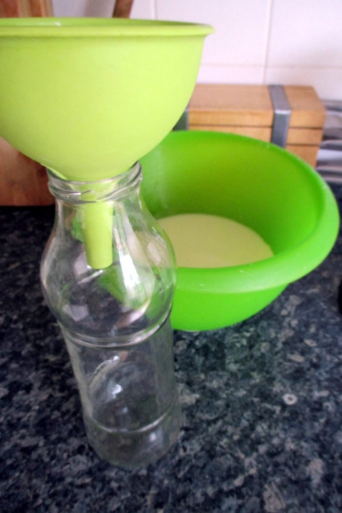 • Pour the filtered milk into the bottle.