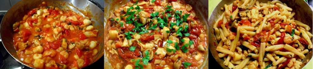 The pasta with frozen seafood is one of the favourite dishes at my house when there is little time to cook but we want to eat something special. Of course, when I’m lucky enough to find fresh fish here in the Netherlands or whenever I go to Italy, I certainly prefer a nice spaghetti allo scoglio, even if I make it in a light version. But here I can’t always find the ingredients and often we’re in a hurry, so long live frozen seafood.