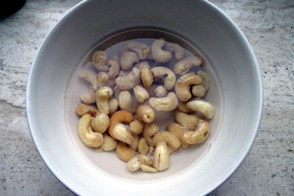 Boil some water and pour it over the cashews. Let them soak for about 1 hour or longer. You can also soak them in cold water overnight.