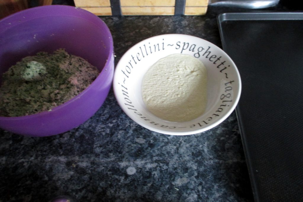 I didn’t take photos for the preparation of the spinach, but I’ll explain my no-cook method: place them in a pot with a little salt, boil some water and pour it over the spinach. Stir quickly and as soon as they are all wilted, drain them, rinse with cold water and squeeze them out thoroughly.