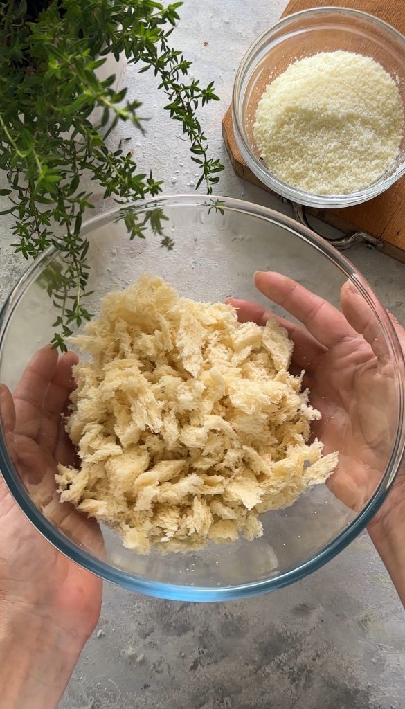 - 4.6 oz stale bread (only the crumb – 190 gross weight)