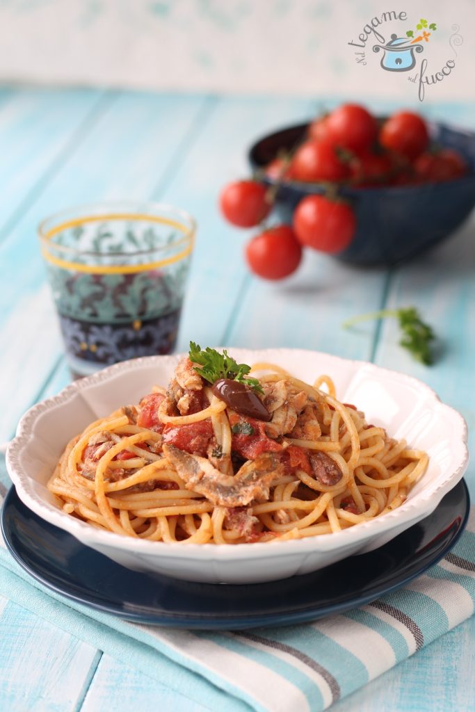 Fresh anchovies are rich in omega-3 and are very healthy, even for those following a low-calorie diet. To lower the glycemic index of the dish, choose whole wheat spaghetti.