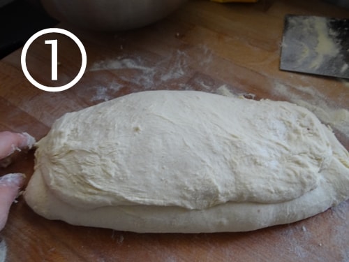 After the first rise, dust the surface with semolina flour and pour out the dough. With your fingertips, flatten the dough, which should be just over an inch thick. Dust the surface with a little semolina flour and then cut the dough into 8 pieces. Cover with a cloth and let the slippers rise for about 2 hours.