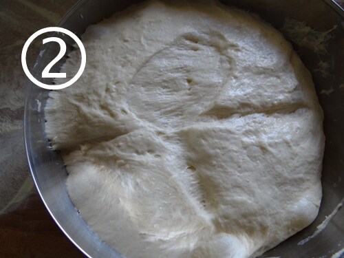 Place the dough in a clean bowl. Make a cross cut and cover the bowl with a cloth. Leave in a warm place for about 3 hours or until doubled.