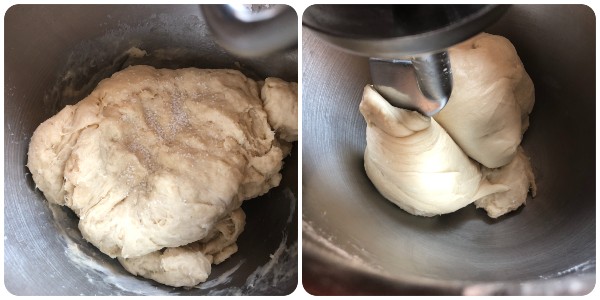 Finally, add a pinch of salt and continue kneading until you get a smooth and soft dough that clings to the hook.