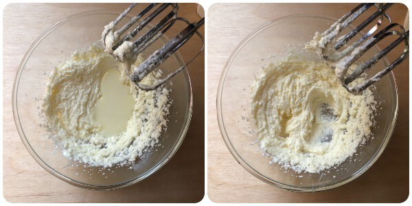 • Place the butter cut into pieces in a bowl and let it soften at room temperature or microwave for a few seconds. Then add the sugar and work with the electric beaters until the two ingredients are well combined.