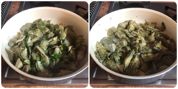 Boil the artichoke hearts in salted boiling water for 5 minutes, then drain and set aside. You can use either fresh or frozen artichoke hearts. The latter are certainly more convenient.