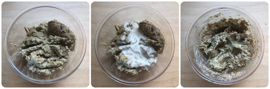 Once cooked, place the artichokes in a mixer along with the walnuts and blend until a smooth mixture is obtained. Transfer it to a bowl, add 70 g of béchamel, and mix carefully. Adjust salt if necessary.