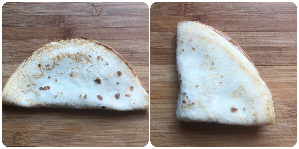 Then, fold the crêpe in half and then again in half to form a triangle.