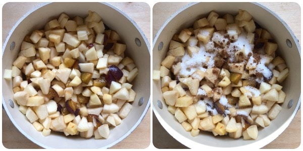 Place all the fruit inside a saucepan, sprinkle with the sugar, and add cinnamon as desired.