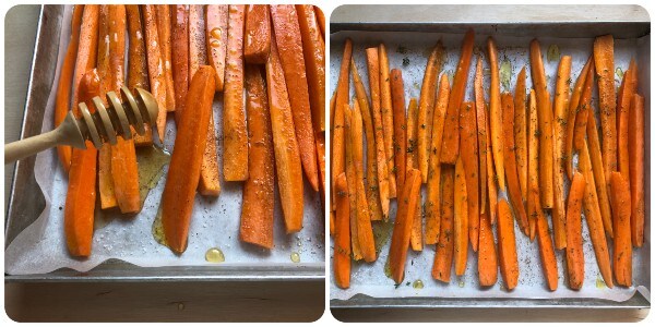 If there’s one thing I really don’t like, it’s cooked carrots. I love them raw, but I really can’t stand them cooked. They remind me of a side dish you eat when you’re sick. So, when I prepared these baked carrots, my thought was to make them for my husband, the only one in the family who likes them. Want to know how it turned out? After taking them out of the oven, I tasted one just to get an idea and liked it so much that after taking photos, I ate another one and then another, practically finishing my portion well before serving them at the table. A real success! Made this way, they were liked by everyone. The pairing with honey is perfect, making them truly special. Don’t hesitate to try them out!