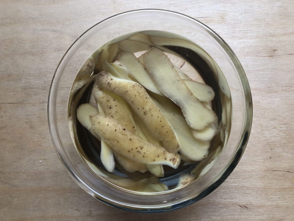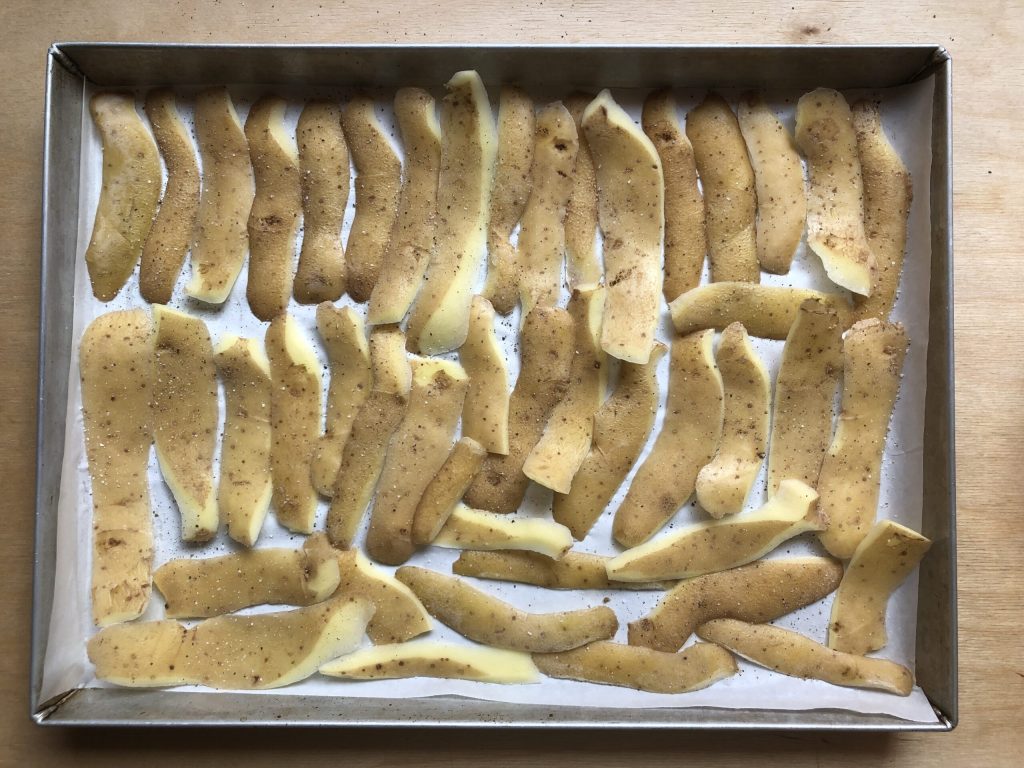 I haven’t specified exact quantities of the ingredients because it all depends on how many potato peels you have: you can easily eyeball it.