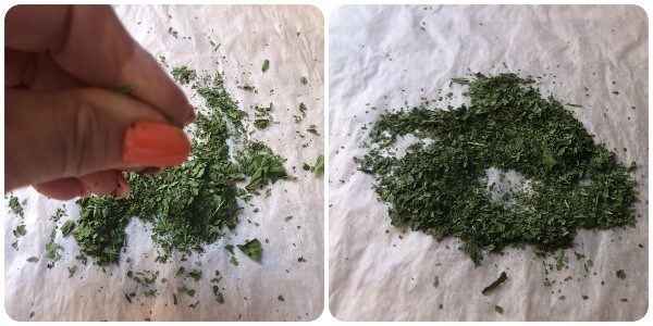 When they are perfectly dry, you can proceed in two different ways: in the oven or in the microwave. I used this second method because it’s much faster and cheaper. However, if you don’t have a microwave, you can put the leaves in the oven at 140°F and dry them with the door slightly open (insert the handle of a wooden spoon). The time has to be estimated a bit by feeling the leaves from time to time, but it will certainly take more than an hour.