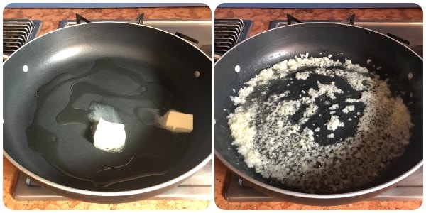 In a large skillet, melt the butter with a few tablespoons of oil before adding the finely chopped onion.